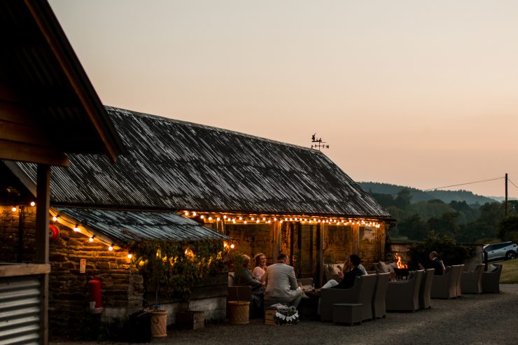 Includes: hay bales, bar, pallet tables, cable wheels, parasols, concrete table tennis table, fairy lights